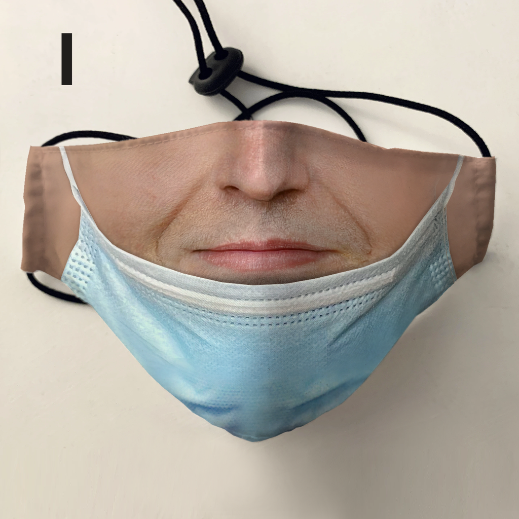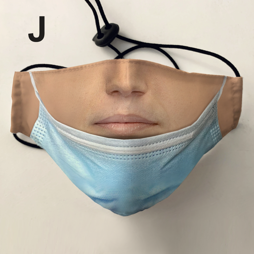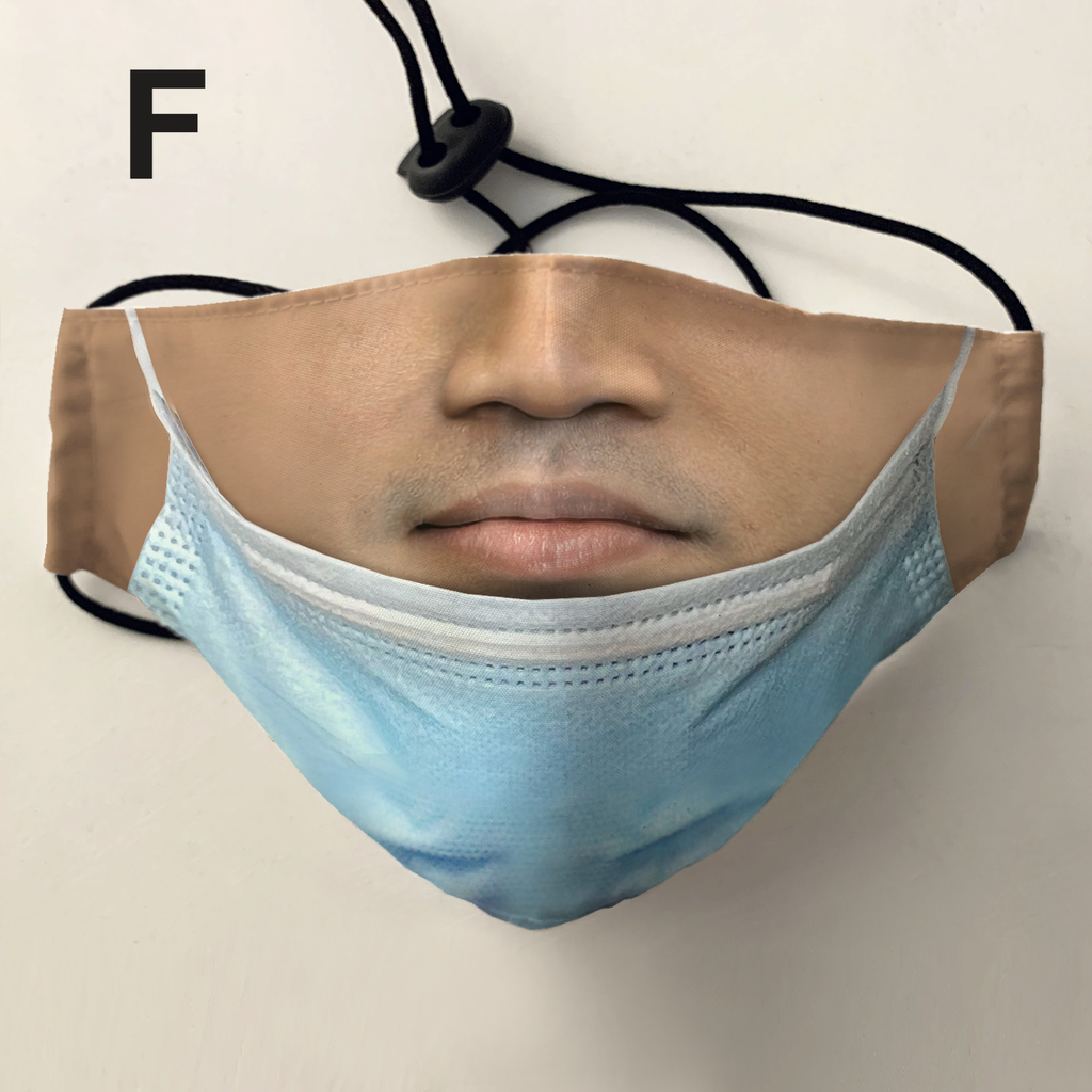 Maybe you've seen a mask like this on TikTok. We made this optical-illusion mask available in a variety of skin tones and features, printed and sewn on a protective 2-layer mask with high thread-count fabrics.